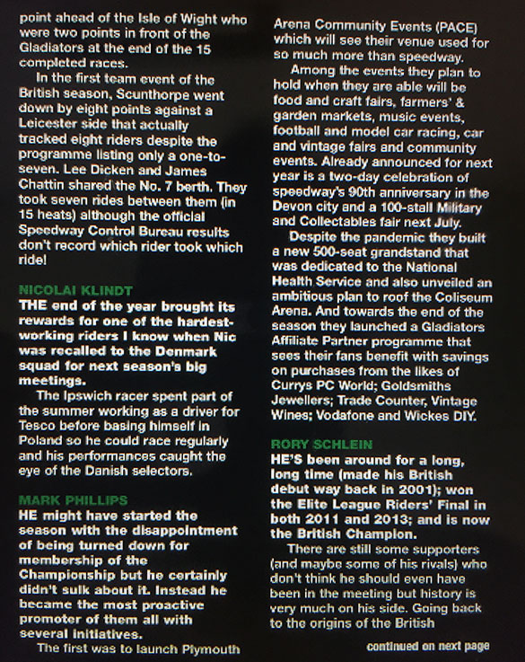 The citation from respected Speedway Journalist and ex Promoter Peter Oakes says it all.
